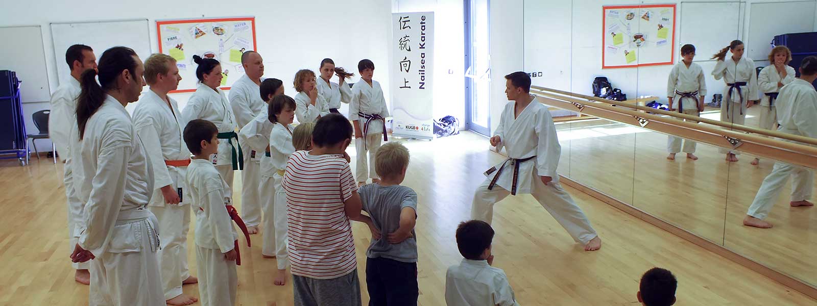 The facilities at Nailsea School provide Nailsea Karate with an excellent dojo training space, with sprung wooden flooring at full height mirrors, perfect for Karate training. We hold classes for beginners right the way up to black belts every Wednesday evening, with beginners training at 6.30pm. Adults and children aged 7 and upwards are welcome. If you're interested in training on other days, take a look at the venues page for the full Bristol Karate Academy training schedule.